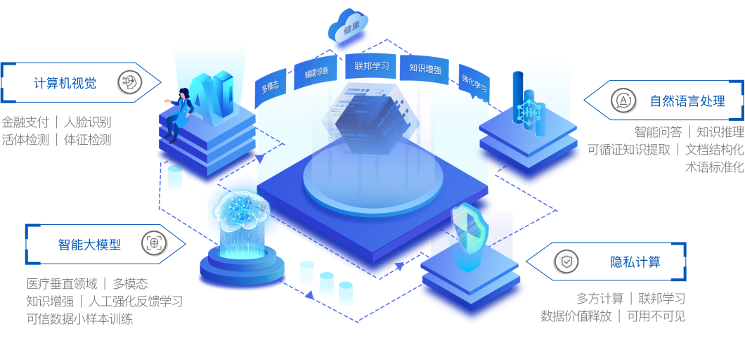 公司致力于提供最先进的医学LLM大模型技术,,帮助医疗行业更好地应对复杂的医疗问题。。。。公司针对医疗健康领域自主研发的智能大模型,,,利用独创性的算法和模型,,在确保保护患者隐私的前提下,,,具备智能分析患者医学影像、、病历文本,,,,以及智能问诊、、、、导诊的综合能力。。。。公司自研的大模型技术具有高度的可扩展性,,,,可以灵活地应对不同场景的需求。。